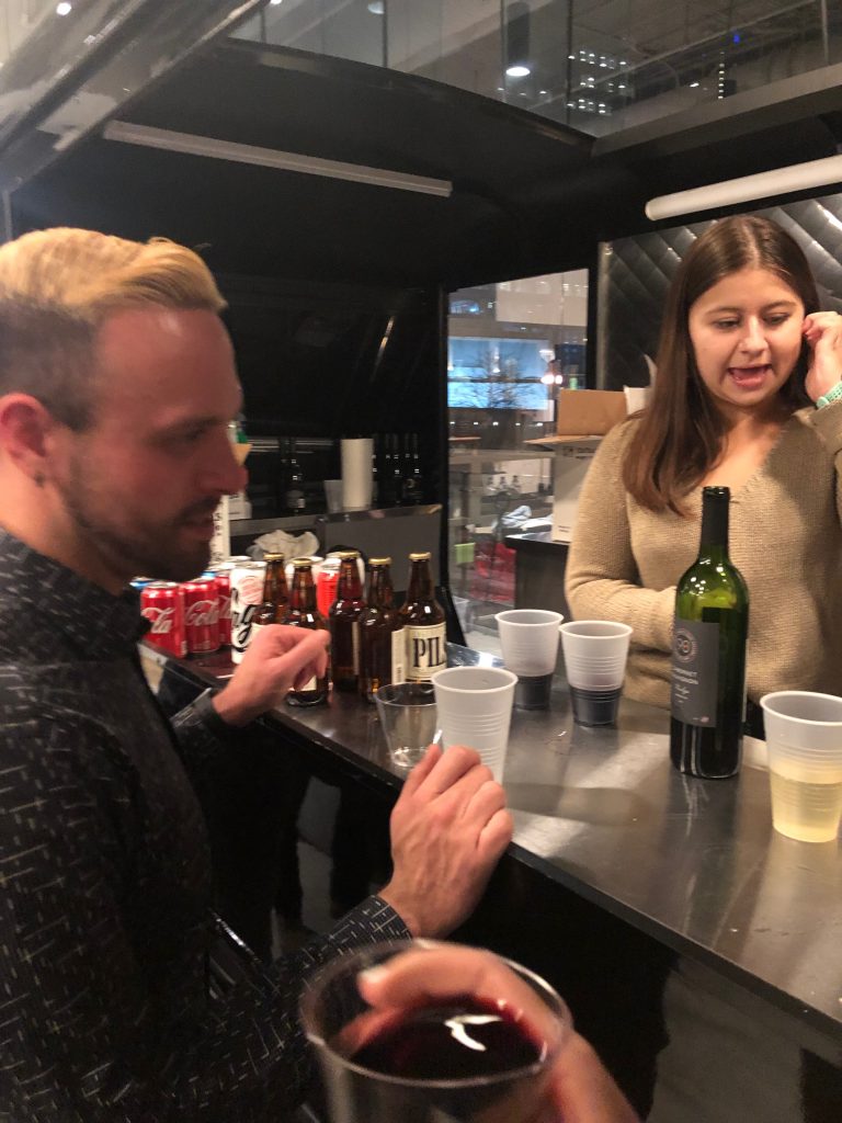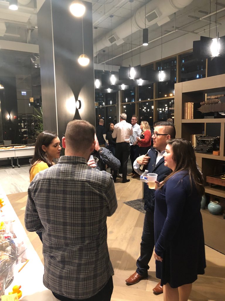 This year, the event was held in our Chicago office’s building lobby, “The Tenant Lounge at The 300.” This is a brand-new space that was renovated earlier this year. We were very excited to hold our event in the larger venue and to host more guests than we were previously able to. Each ticket included food and beverages, and we were pleased to serve food donated by Mediterranean Express and desserts given by Nothing Bundt Cake and Eli’s Cheesecake.