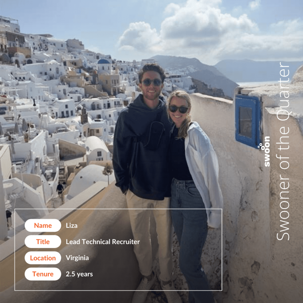 Congratulations to Liza on being awarded Swooner of the Quarter. Through her mentorship and recruiting skills, she has not only exceeded in her role as a Lead Technical Recruiter but also pushed other Swooners to be the best they can be!