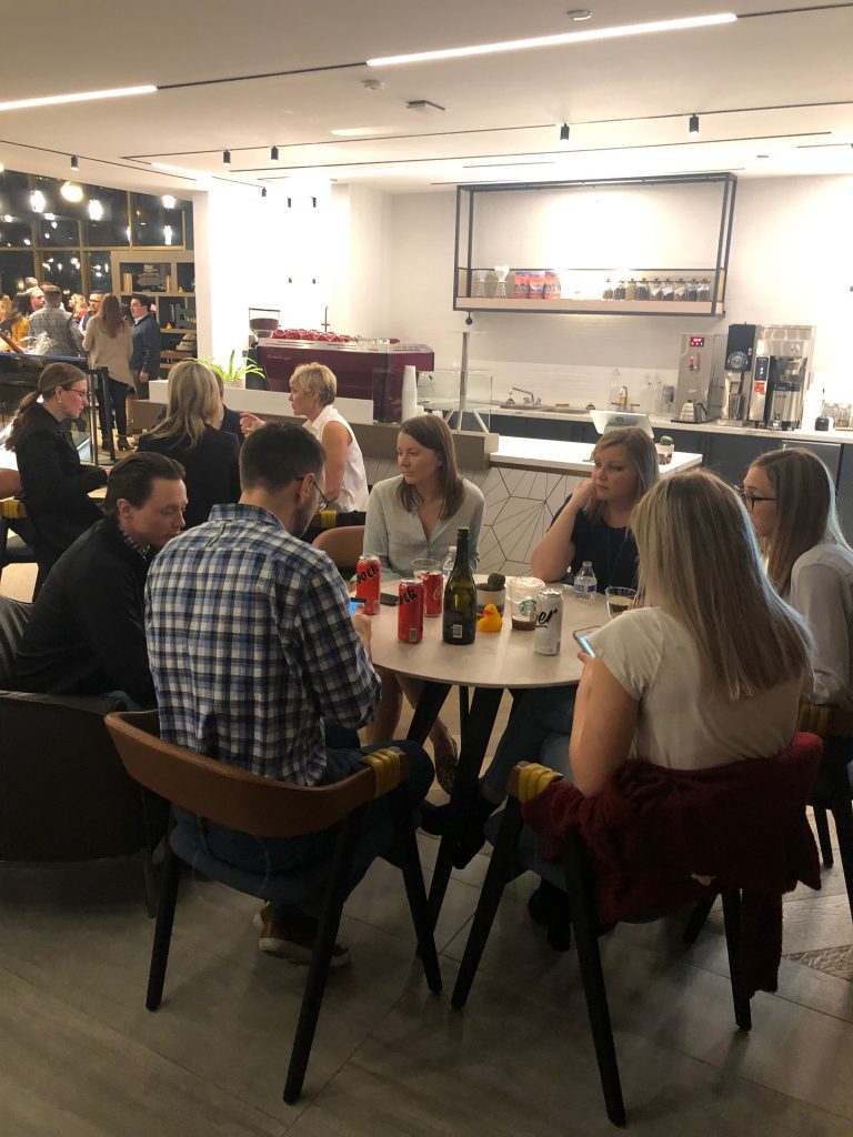 This year, the event was held in our Chicago office’s building lobby, “The Tenant Lounge at The 300.” This is a brand-new space that was renovated earlier this year. We were very excited to hold our event in the larger venue and to host more guests than we were previously able to. Each ticket included food and beverages, and we were pleased to serve food donated by Mediterranean Express and desserts given by Nothing Bundt Cake and Eli’s Cheesecake.
